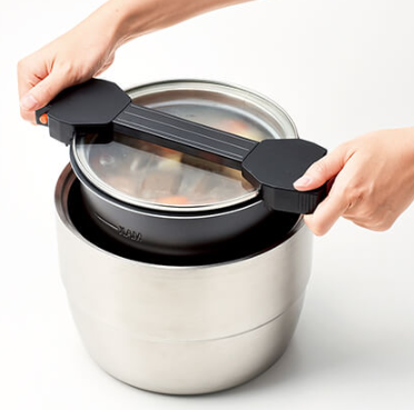 クッキングプロで加熱後、そのまま専用の内なべを保温調理ポット内に入れることで、温度が下がりにくく、電気を使わずほったらかしで簡単においしい料理ができ上がります。