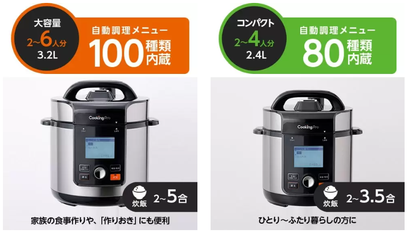 【3.2Lサイズ】:100レシピ / 【2.4Lサイズ】: 80レシピ