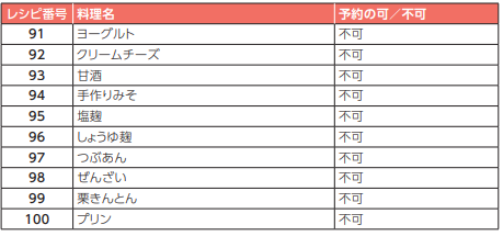 また、「スロー調理」「発酵調理」「蒸し調理」「炒め」「煮込み」の工程は予約できません。