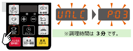 ※調理時間は、初期設定の 3分 から変更することはできません。
