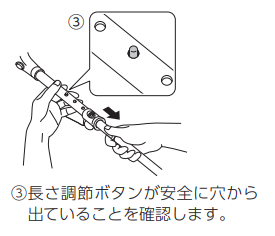 ③長さ調節ボタンが安全に穴から出ていることを確認します。
