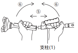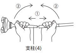 ①支柱(4)のつなぎ目をゆっくりと引き抜きます。