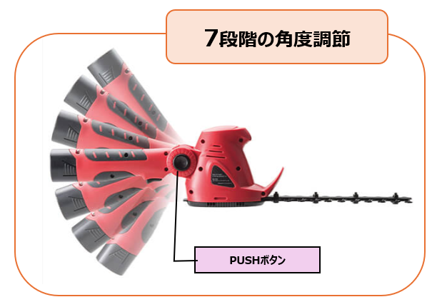 本体の丸い黒色のPUSHボタン(角度調節ボタン)を押しながらグリップを動かします。