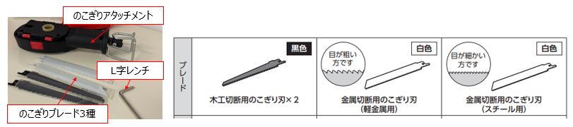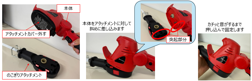 のこぎりアタッチメントの取り付け方は、以下をご確認ください。