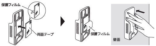 もう一方の保護フィルムを剥がし、リモコンホルダーを設置したい滑らかな表面に貼り付けます。