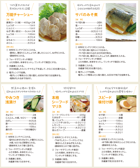 ※フォーサ真空袋をご利用の場合は、別売りでレシピ本の販売がございます。