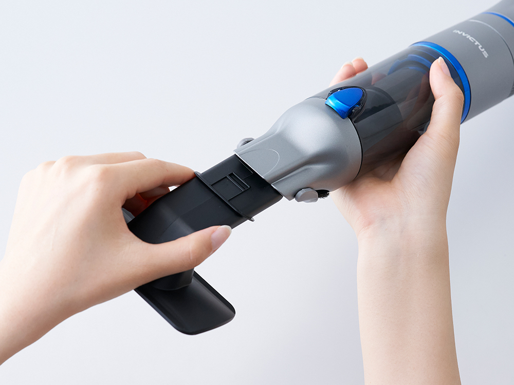 毛足が短いブラシが付いているので、奥に入り込んだホコリを、かき出しながら吸引します。
