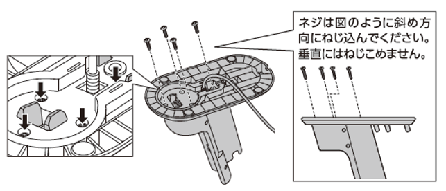 ①充電スタンド下部の底面4か所に底面側からネジをセットします。