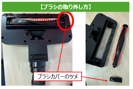 ①ブラシカバーのツメを手前に引っ張り、ブラシカバーを外します。