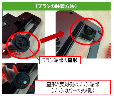 ①ブラシ端部の星形になっている側をパワーヘッドのブラシ軸受けに差し込みます。