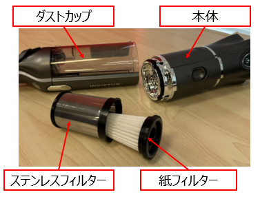 フィルターの目詰まりが原因ですので、先程お手入れしていただいたステンレスフィルターと紙フィルターを再度装着していただくと、本体は正常に動作してご使用いただけます。