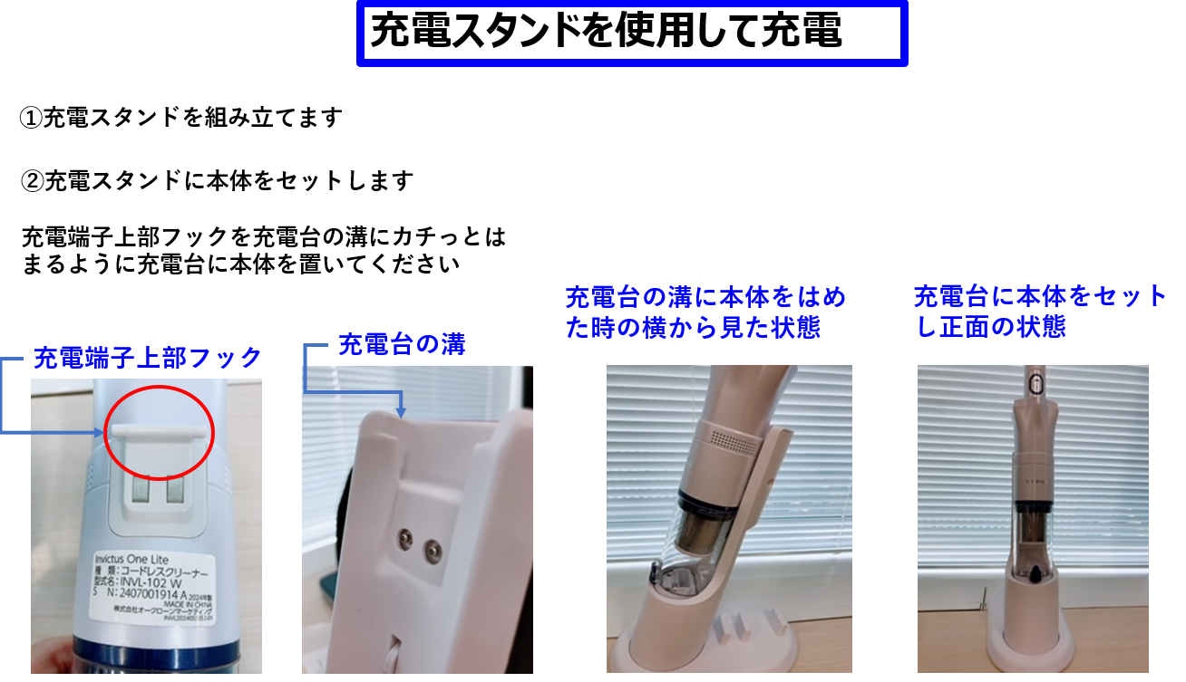 ②充電スタンドに本体をセットします。