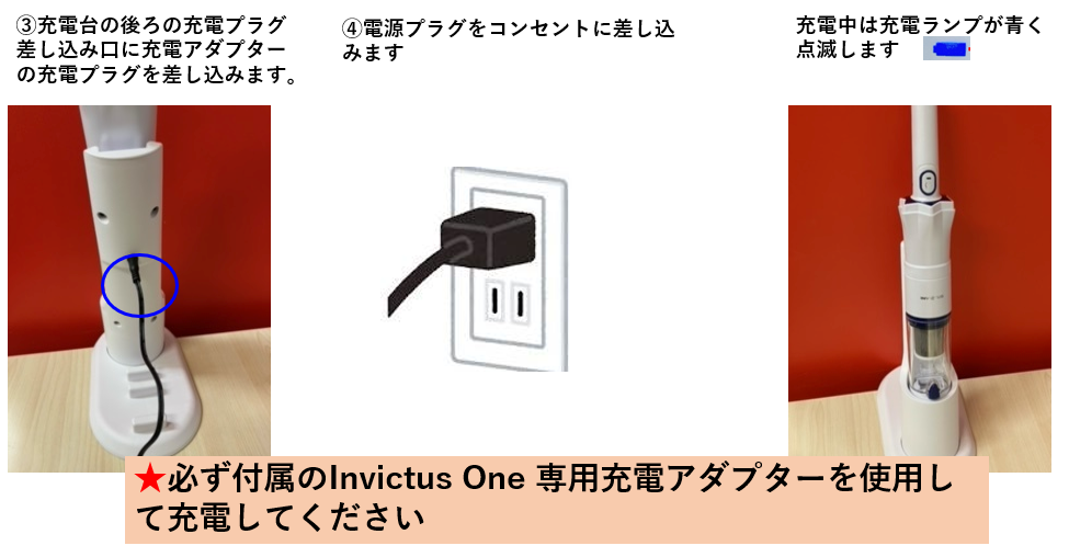 ※必ず付属のInvictus One 専用充電アダプターを使用して充電してください。