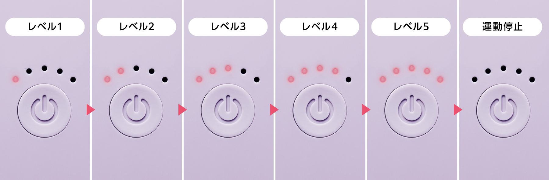 運転ボタンを 短く 押すと、振動レベル1 で電源が入ります。