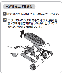 ②高さ調節ノブを右に回し、もう片方のペダルの高さを調節します。