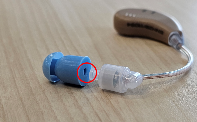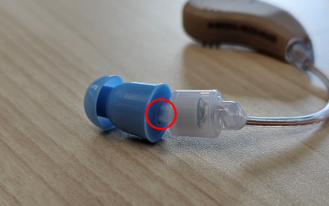 イヤーピースには左図のように穴が空いていますので、本体側の凸を差し込みます。
