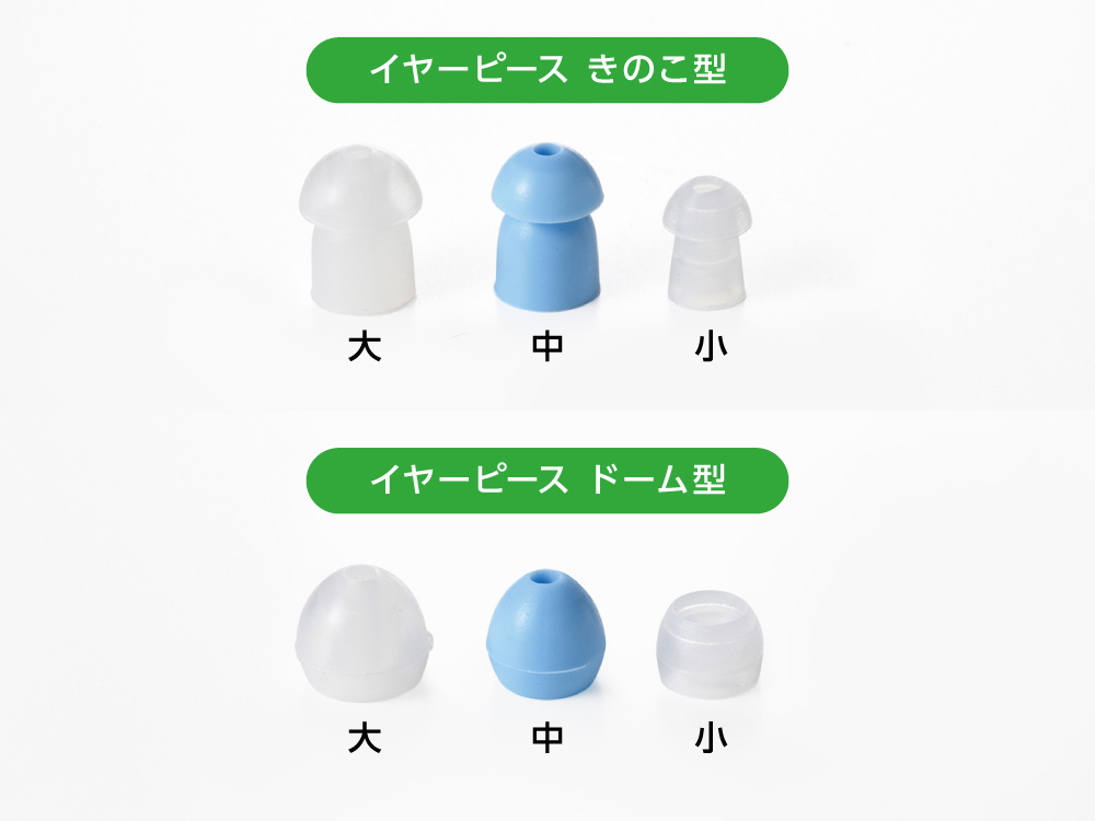 ※イヤーピースは、きのこ型・ドーム型(大-中-小)があります。