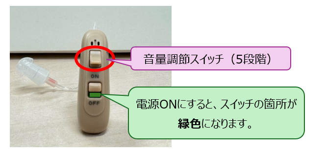 ❹ご使用後は、耳から取り外して電源をオフにします。
