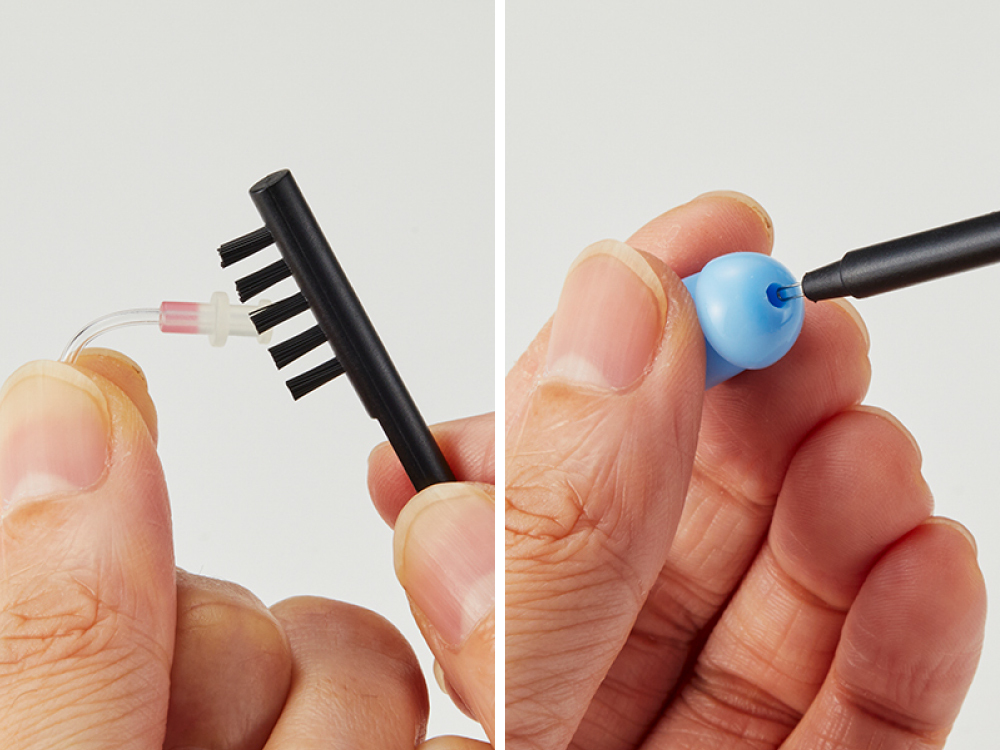 イヤーピースを外して、付属のお掃除ブラシで掃除してください。