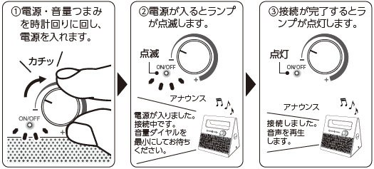 3. 接続が完了するとランプが点灯し、「接続しました。音声を再生します」とアナウンスが流れます。