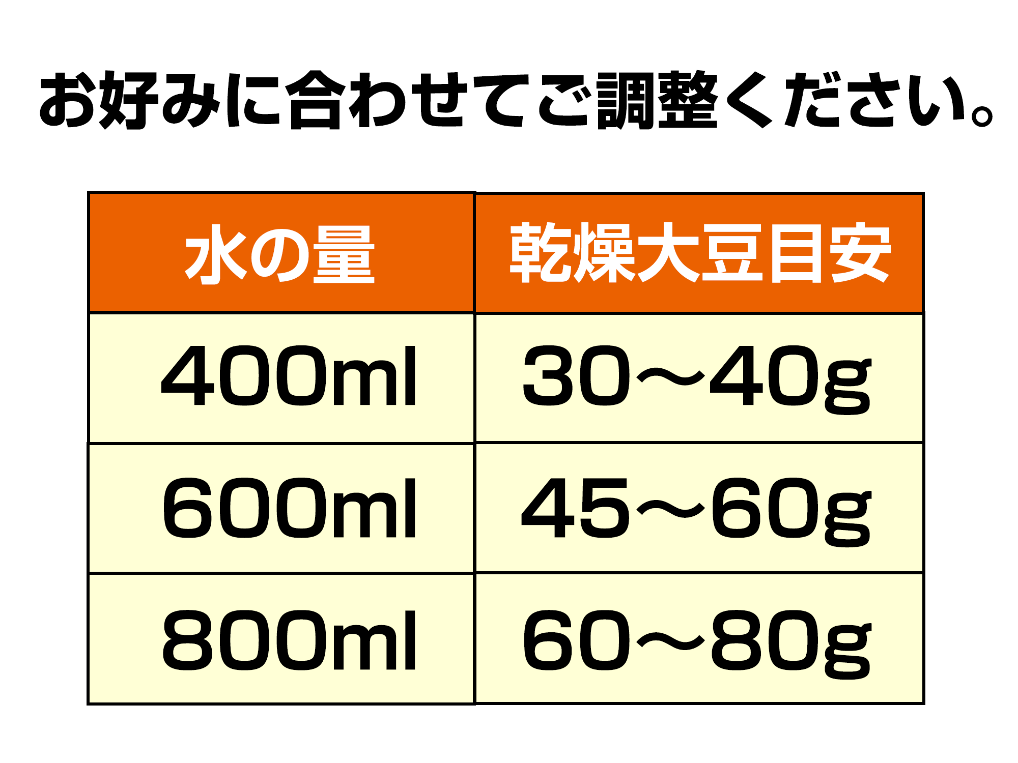 ■乾燥大豆は60 ~ 80gの量が目安です。