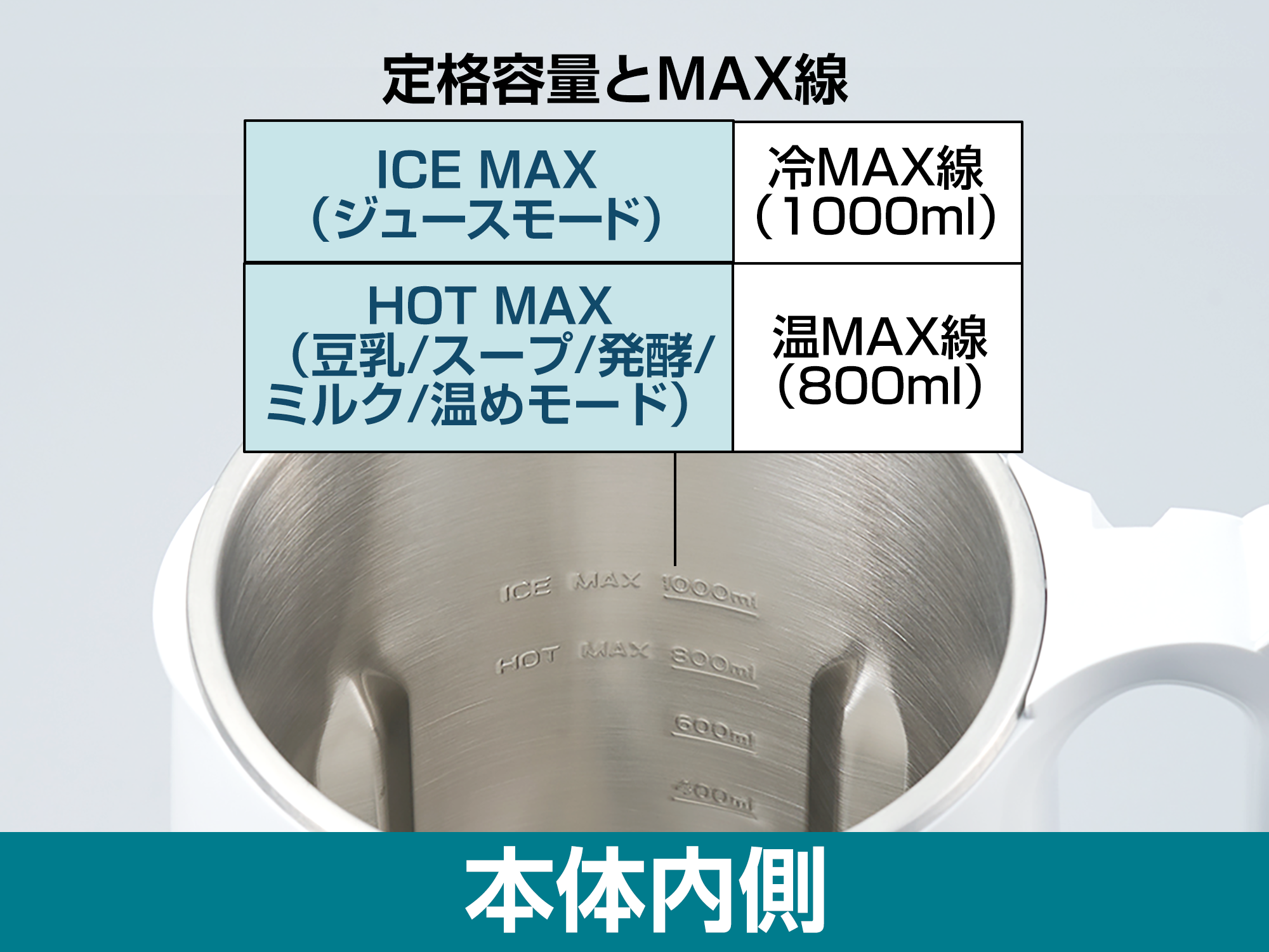 ・豆乳/スープ/発酵/ミルク/温めモード:800ml