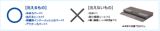洗えるシート、各種カバーは洗濯機で洗うことができます。