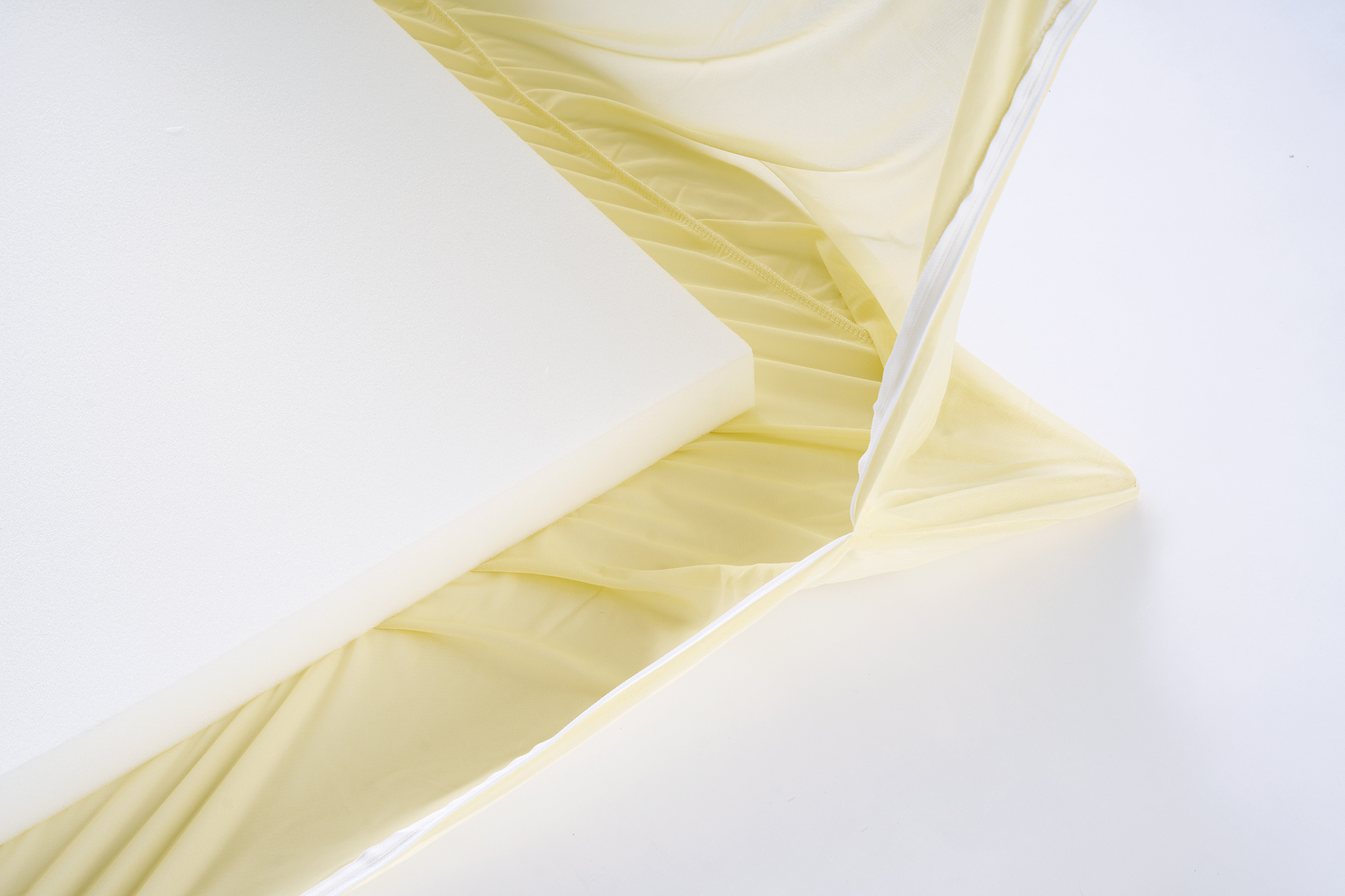 もう一方のカバー面をマットレスの上にかぶせて、包み込むように整えます。