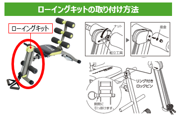 ①ローイングキットのナットを、組立工具で緩め、ボルト・座金を外します。