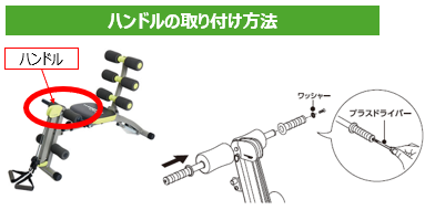 ①組立工具のプラスドライバー(付属)を使ってハンドルの片側のネジを外し、グリップを外します。