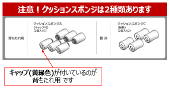 ※クッションスポンジは、背もたれ用と脚用の2種類ありますので、間違えないようにご注意ください!