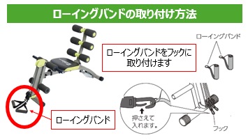 ⑥ローイングキットに、ローイングバンドをフックに取り付けます。
