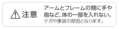 ※アームとフレームの間に手や指など、体の一部を入れないようにご注意ください。