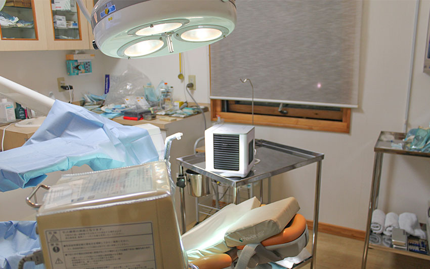 トライアスロンにも挑戦されるパワフルな歯科医・島村さん。患者さん一人ひとりに寄り添う丁寧な対応が印象的でした。仕切られた診察スペースでは空調管理が難しく、ここひえが大活躍。「最近は本当に暑いから、3月・4月くらいからも活躍しそう!」と、真夏以外での使用にも期待されていました。