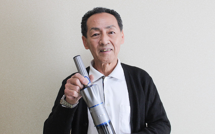 「軽い掃除機が欲しかった」と話す岡本さん。重いハンディ掃除機に悩まれていた中、インビクタス ワンの軽さに感激!洗面所のホコリや髪の毛もサッと掃除でき、今では毎日大活躍。静音性や使いやすさにも満足され、お気に入りのお車の中の掃除にも重宝されています。暮らしがより快適になったと、素敵な笑顔で語ってくださいました。