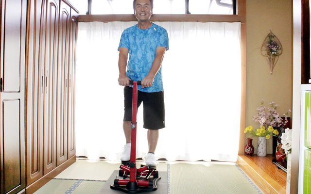 ナイスデイを知ったのは、テレビのコマーシャルです。足腰の強化になることを期待して、遊びがてらにやってみようかな、という気軽な気持ちで注文しました。いざやってみると、意外とハードで。太もも、そしてお尻の部分にきてるぞ、と実感しました。1週間ぐらいたつと、これまでとの違いを感じてどんどんハマっていきました。ナイスデイはコンパクトなので、部屋の片隅に置いておけばいつでも取り出せるのがいいですね。テレビを見ながらやっているとあっという間。ジムに行くのは面倒でやめてしまったのですが、ナイスデイが続けられたのはこの手軽さのおかげです。油圧式でスムーズに動くので、膝にガクガクとした負担を感じることもなく、筋力が徐々についてきました。ゴルフでお風呂に入ると、太ももやふくらはぎを見た仲間から「おっ」と驚かれることもあるんですよ。使い始めてもう5年ほど。今ではナイスデイは生活の一部になっていて、手放せません。