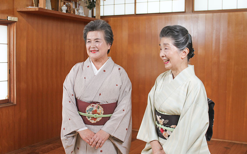 立ち姿も座り姿も美しく、稽古場までの階段もスイスイ上られる寿柳さん。「いつまでも踊りたい!」という思いはご本人もお弟子さんも同じで、その情熱が伝わってきました。実はほかのお弟子さんもナイスデイをご愛用されているそうで、改めてその魅力を実感!そんな寿柳さんにお役立ていただけることが、本当に嬉しかったです。