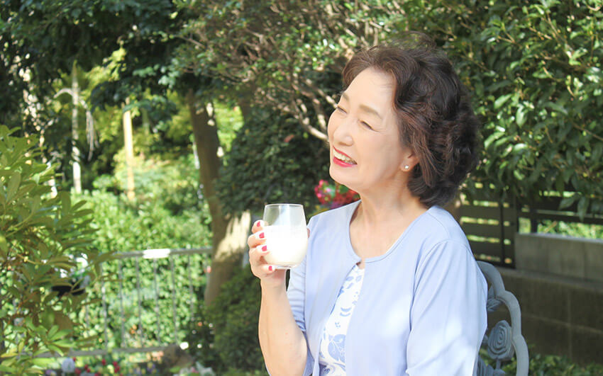 健康への意識が高い鹿取さんは、毎日の食事にもこだわりをもって過ごされています。ソイリッチに出会い、「これが本物の豆乳なのね!」とその味に感動されたそうです。自然なおいしさを楽しみながら、日々の食生活に取り入れられているご様子。「いつまでもゴルフを楽しみたい!」と素敵なフォームを披露してくださる姿が印象的でした。