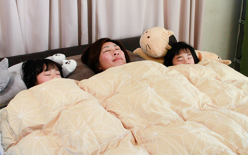 私はとにかく寒がりで、冬は毎日が大変でした。靴下やガウンを着込んで、重たい布団を何枚もかけて寝ていましたが、それでも寒さを感じてしまうんです。隙間風が入ると肩や首が冷たくて、朝は布団から出たくないほどでした。布団が重すぎて寝返りも打てず、腰や肩が痛くなることも。暖房をつけっぱなしにすると喉がカラカラになり、子どもたちと「あと5分だけ」と布団の中で粘る毎日。もっと軽くて暖かい布団が欲しいと思いながらも、羽毛布団は高くてなかなか手が出せませんでした。そんな苦労をしていた頃が、ホオンテックに出会う前の私の冬の現実です。