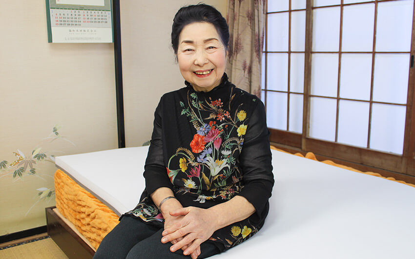 私は19歳で農家に嫁いでから、田んぼや畑、豚の世話などさまざまな農作業を続けてきました。気づけば50年ほどになります。農作業は腰を曲げた姿勢が多く、長く続けるうちにだんだん腰も曲がってきました。以前使っていた布団では、仰向けになると腰に重みがかかる感じがあり、横向きになると今度は肩の負担が気になってしまうんです。どちらの姿勢でも落ち着かず、寝つくまでに1時間ほどかかることもありました。ラジオを小さくかけて気を紛らわせながら眠ることもありましたね。その頃は農家の仕事をしていればこんなものだと思っていましたが、今振り返ると寝具が体に合っていなかったのかもしれないと感じています。