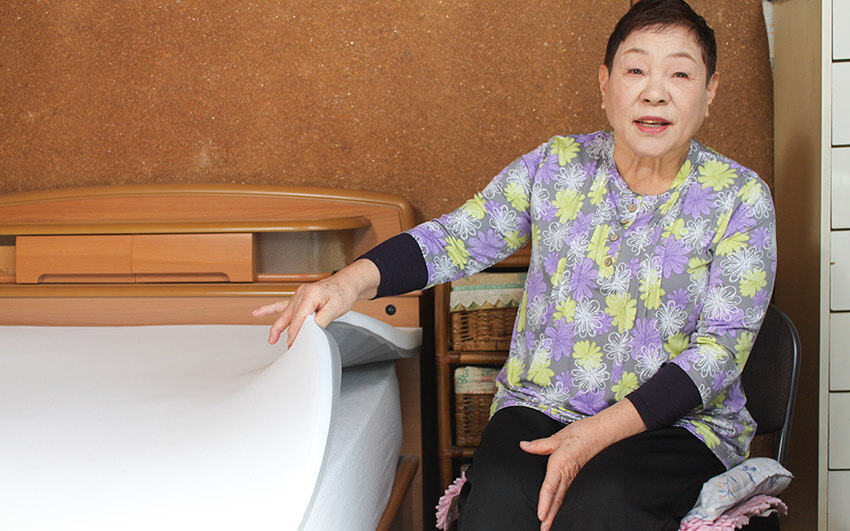 「腰がつらいって言っている人がいたら、うちのベッドに寝かせてあげるの」と笑顔で話す清水さん。ご近所やご友人を招いて、ご自身のベッドに敷いたトゥルースリーパーを実際に試してもらうこともあるそうです。寝心地に納得して購入された方もいるそうで、まさに“宣伝部長”。その温かいお人柄に、スタッフ一同頭が下がる思いでした。