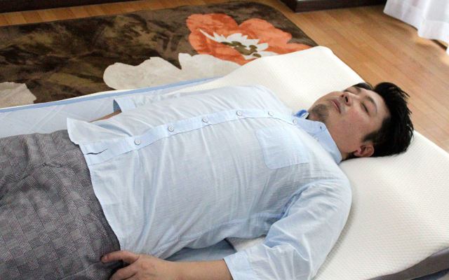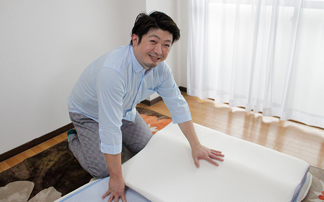 初めてセブンスピローを見たとき、かなり大きいなって思いました。布団の端から端まであって「なんだこの大きさは?」というのが正直な第一印象でした(笑)。でも1週間、2週間使ってみたら、寝起きに「あれ、軽い」って印象があったんです。寝返りをうつと肩に違和感を感じて目を覚ましてしまい、そこから1~2時間寝れないことがありましたが、セブンスピローを使うようになってからそれが少なくなって、朝まで快適に寝られるようになりました。以前に比べると、すっきり起きられるようになりました。普通の枕だと、首と布団の間に段差ができるので、睡眠中の肩の違和感が出たんだと思います。セブンスピローは段差なく、ピタッとフィットしてくれる。この肩まできてくれる大きさと、そして寝返りをうつので、この幅が自分には合っていたんだと思います。