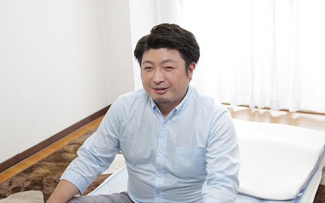 初めてセブンスピローを見たとき、かなり大きいなって思いました。布団の端から端まであって「なんだこの大きさは?」というのが正直な第一印象でした(笑)。でも1週間、2週間使ってみたら、寝起きに「あれ、軽い」って印象があったんです。寝返りをうつと肩に違和感を感じて目を覚ましてしまい、そこから1~2時間寝れないことがありましたが、セブンスピローを使うようになってからそれが少なくなって、朝まで快適に寝られるようになりました。以前に比べると、すっきり起きられるようになりました。普通の枕だと、首と布団の間に段差ができるので、睡眠中の肩の違和感が出たんだと思います。セブンスピローは段差なく、ピタッとフィットしてくれる。この肩まできてくれる大きさと、そして寝返りをうつので、この幅が自分には合っていたんだと思います。