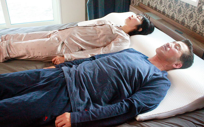 妻には、寝返りをいくら打っても落ちることがない大きさが特に魅力のようです。「まるで子どもがお母さんに抱っこされているように、首や肩も支えてくれる。包み込まれるような感じで気持ちがいい。寝るのが楽しみになった」としあわせを感じています。