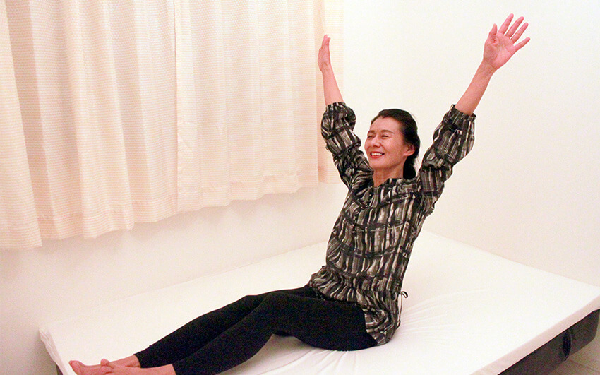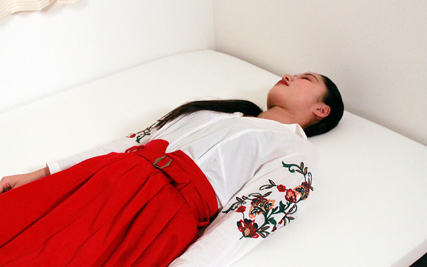 ヘルパーの仕事をしていた頃は、首から腰のあたりまで、まるで鉄板でも入っているかのように緊張してました。当時は、ソファベッドの上に敷布団を敷いて寝ていたんですが、薄かったこともあって、全体重の負荷が背中や腰にかかっているような感覚がありました。そんな状態なので、寝返りもうまくできません。家事や育児も忙しかった頃で、そもそも睡眠時間もまともに確保できなくて、当然ながら疲れていたので、せめて心地よく眠りたいと思っていたのですが…。なにせ、起きた直後が一日の中で一番体が重いんです。布団の上でしばらくストレッチしてからじゃないとスッと起き上がることさえできない。毎日、どうリセットしようかな?というのが課題でした。