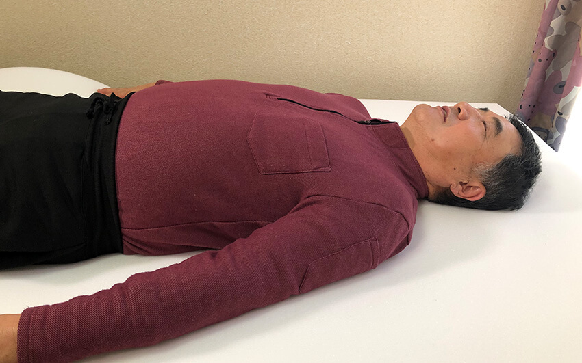 私は建設業の鉄筋工という仕事なんですが、腰をかがめての作業が多くて。田植えのような体勢というんでしょうか。腰への負担がすごく気になっていたんです。だから、夜はしっかり休みたい、腰を伸ばして眠りたいと思っていたんですが、横になっても背中の違和感が取れず、重苦しくてなかなか寝付けませんでした。鉄アレイが腰にずっとぶら下がってるようなイメージです。その腰をかばおうとすると今度は肩や首にも負担がいって、こっち向いても、あっち向いてもダメ…みたいな。背中にタオルを敷いたり、工夫したこともあったんですよ。でもどれもあまり合わなかったようでした。