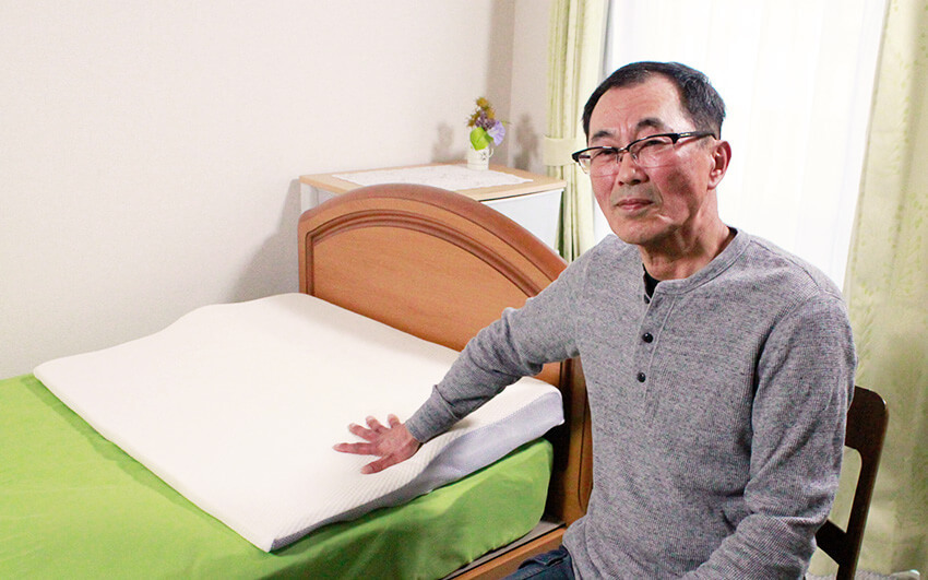 夜中よく寝返りを打つんです。これまではもみ殻とかそば殻とか、そういう硬めの高い枕だったもので、そうするとずり落ちて夜中に何度も目が覚めてしまうんです。それと同時に睡眠時に首や肩の負担も感じていました。